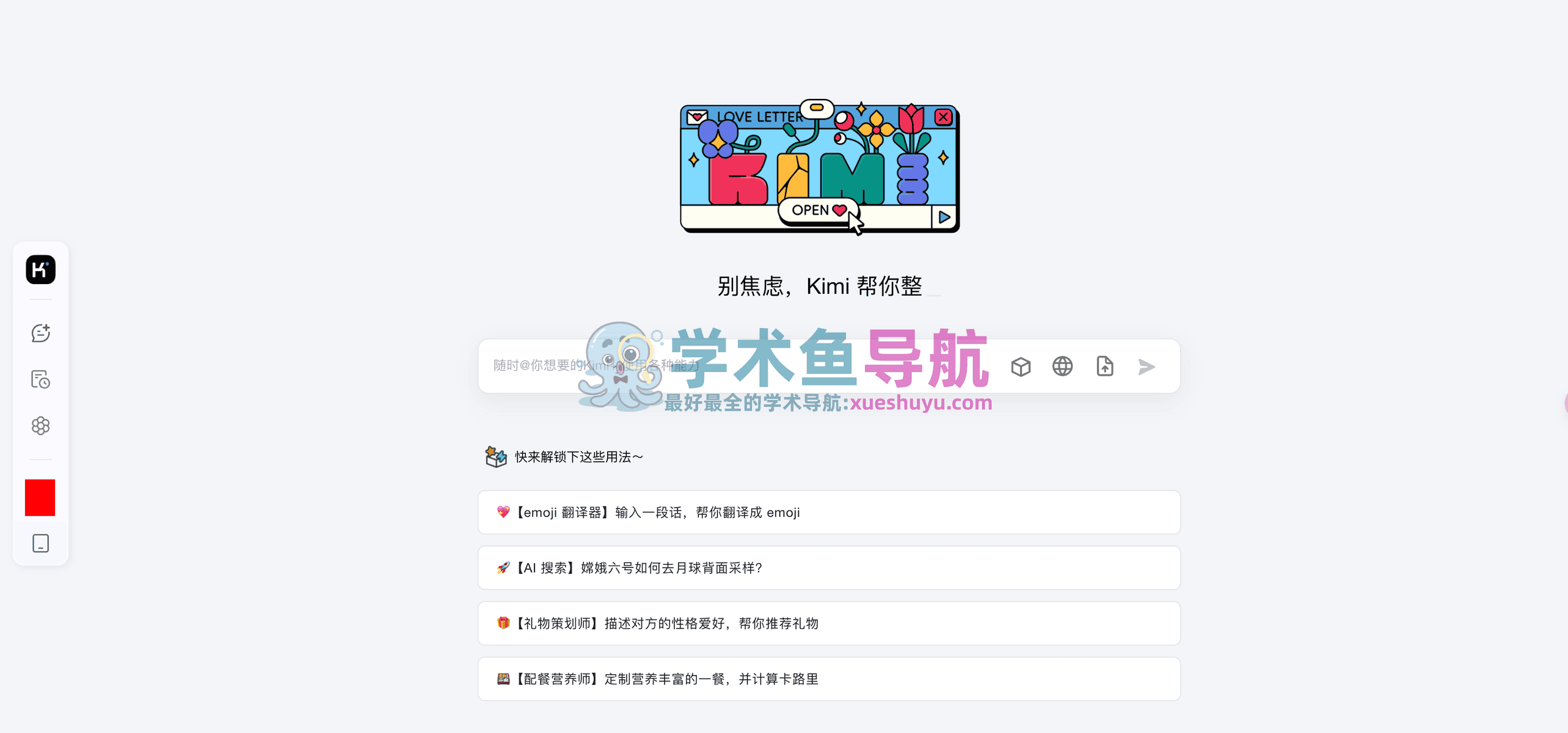 它的口号是: 别焦虑,Kimi帮你整理资料,文件,拖进来;网址,发出来。