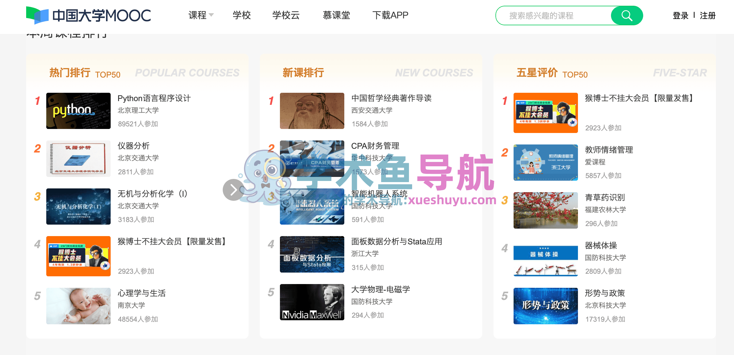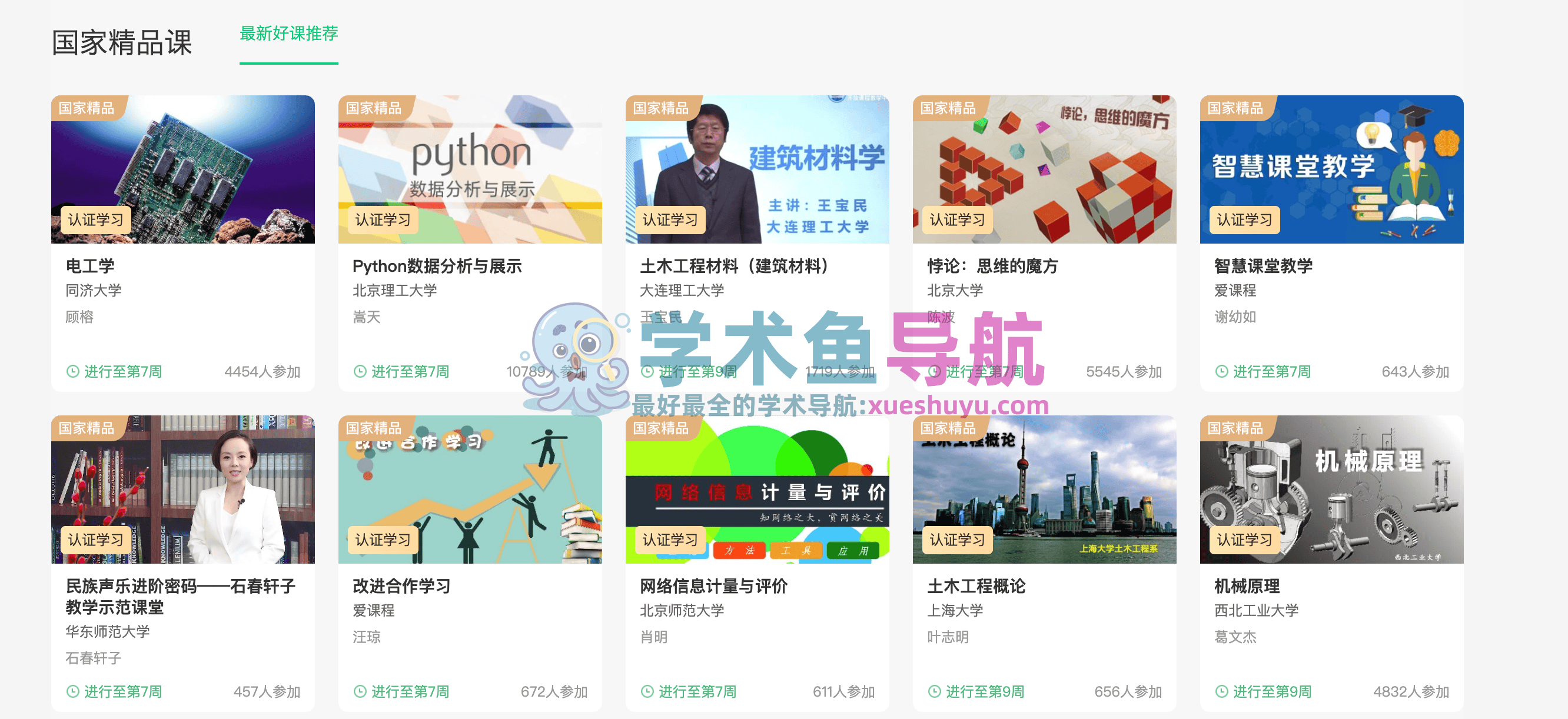 中国大学MOOC汇集了来自国内知名高校的数千门在线课程,涵盖了人文、社会科学、自然科学、工程技术等多个领域。不论是学习者想要提升专业能力,还是拓展兴趣爱好,都能在这里找到适合自己的课程。