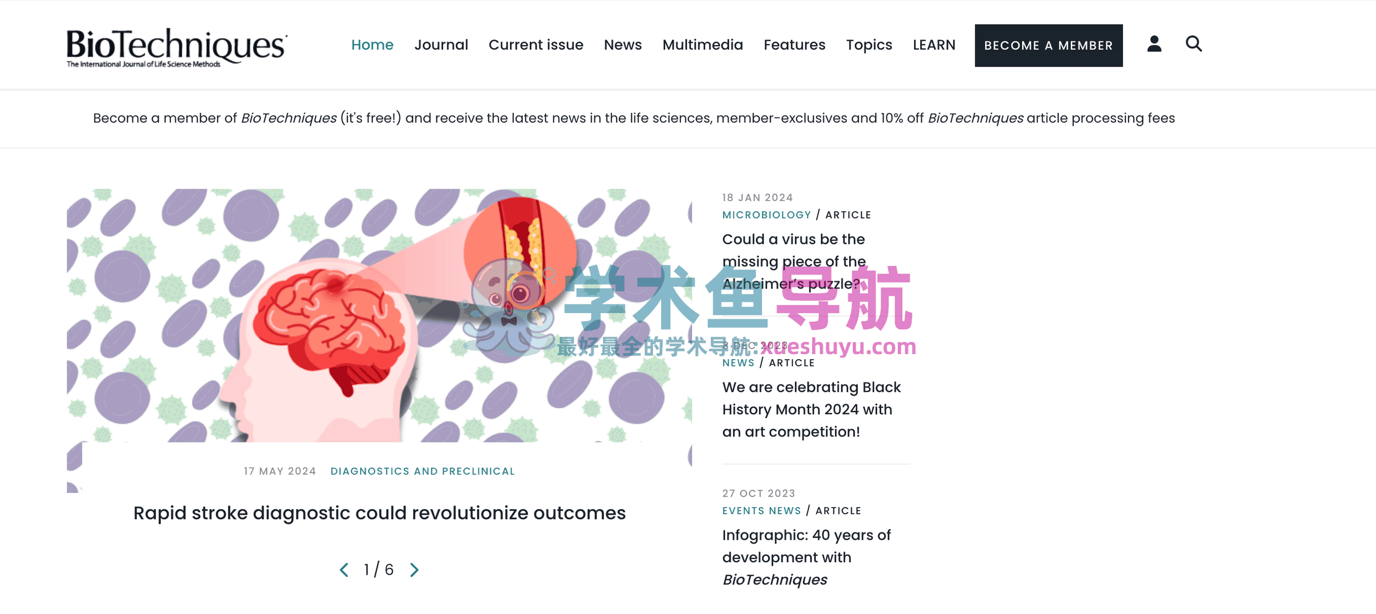 3. BioTechniques:这是一个专注于生物技术方法和技术的在线杂志,提供最新的实验方法和技术应用的信息。