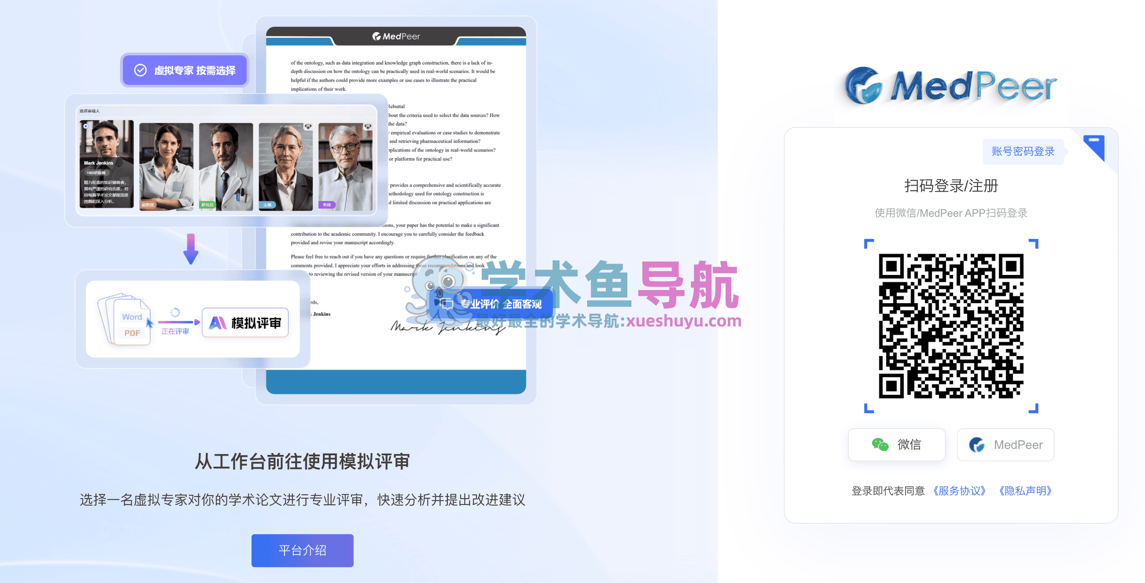 **MedPeer** 是一家利用先进的人工智能和大数据技术的医学科研服务平台,汇聚并整理了数十亿级别的医学知识。无论是文献调研、文献翻译、科研选题,还是实验技术学习、实验方案设计,甚至是实验数据处理、论文撰写、插图绘制、文献润色等,MedPeer都能提供一站式服务。