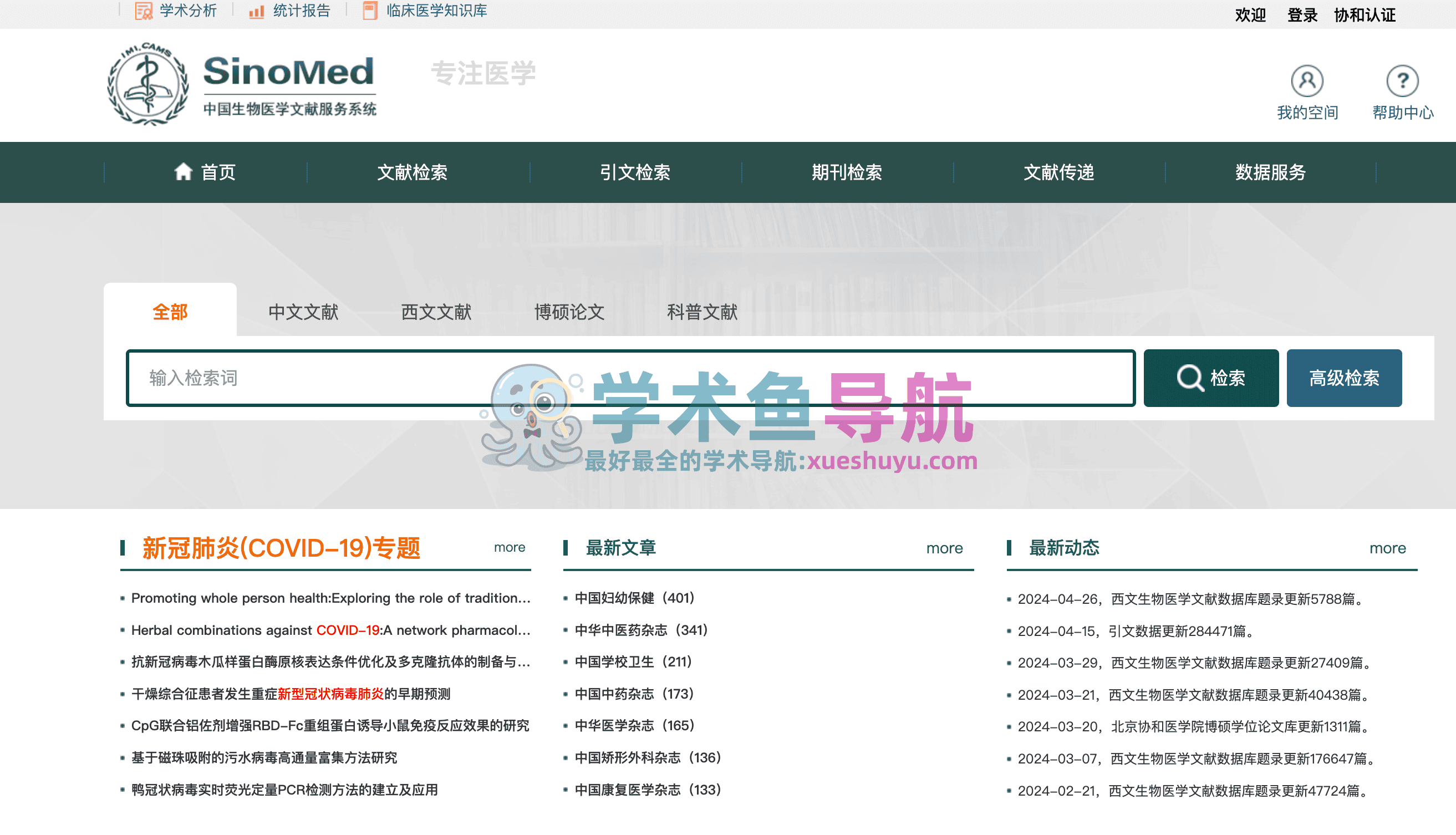 SinoMed官网,中国生物医学文献数据库,免费入口