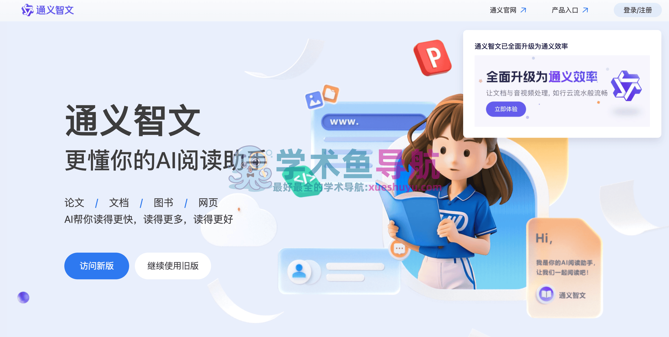 通义智文官网,AI文献论文阅读助手,网页,图书和文档,基于通义大模型