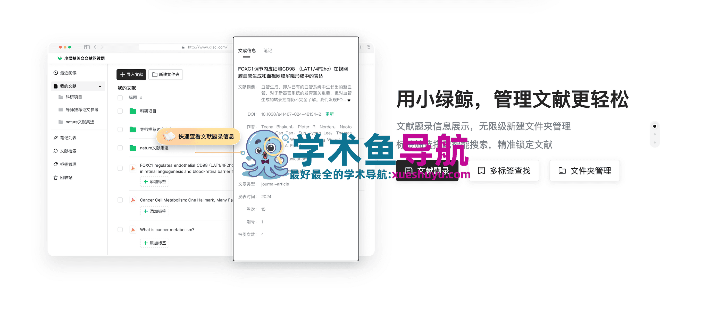 小绿鲸英文文献阅读器官网,集文献管理,文献汇报,写作,翻译,笔记,云端阅读于一体